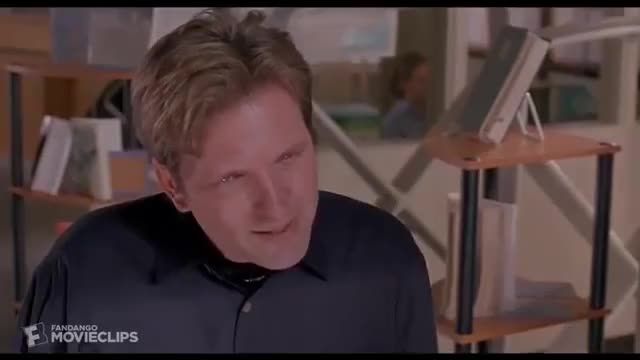 She told him a joke or something'. Something's funny.