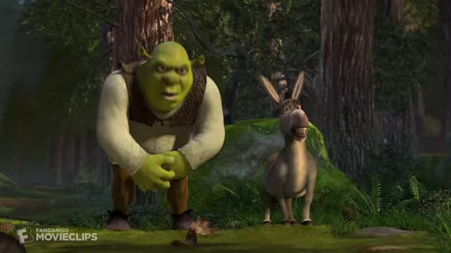 - Look out, Shrek! He got a piece! - It's a cat, Donkey.